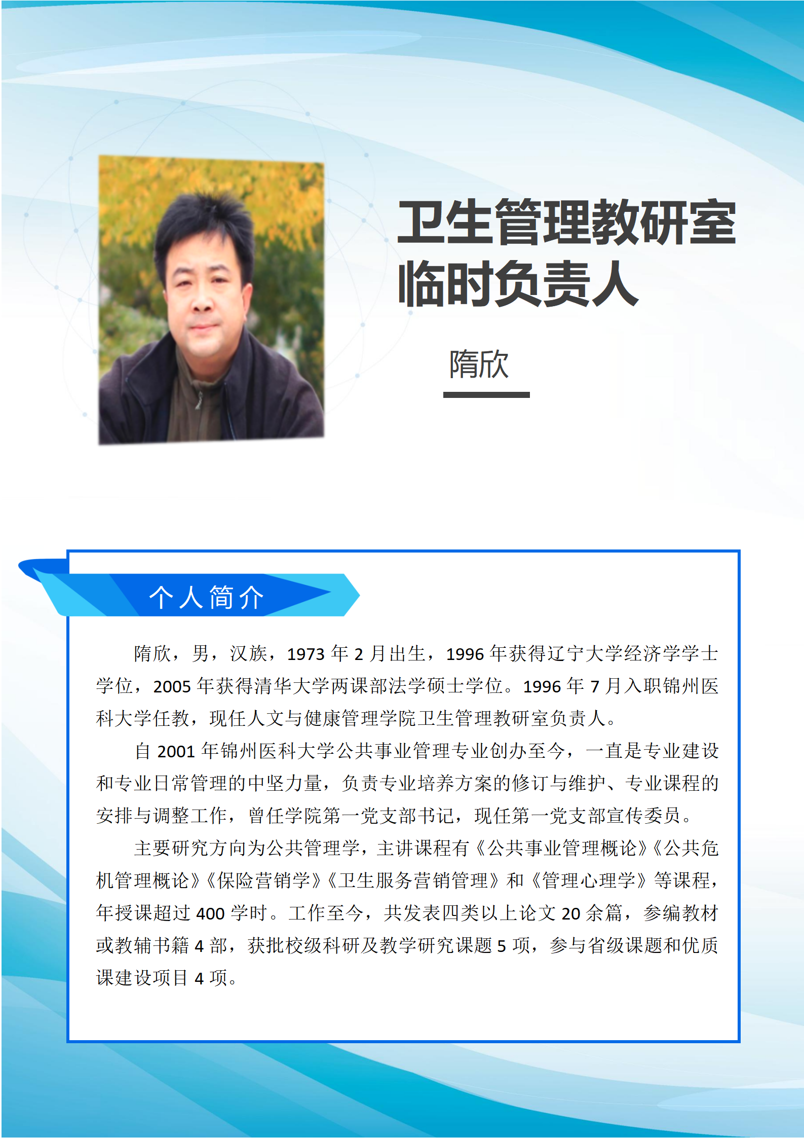 卫生管理教研室临时负责人简介