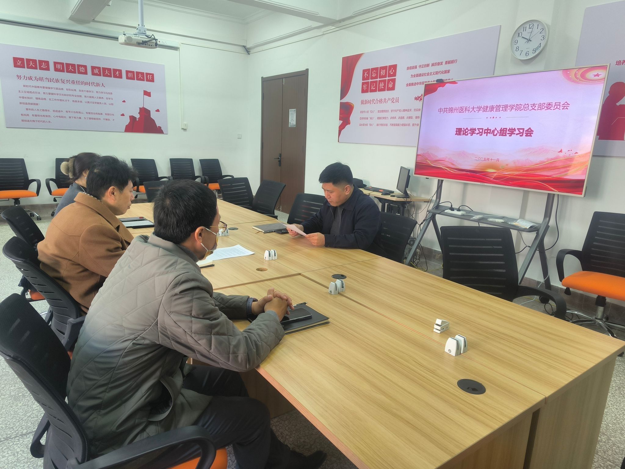 11月17日,澳门正规电子游戏平台在学院研讨室306召开理论学习中心组学习会,深入学习贯彻党的二十届四中全会精神。学院领导班子成员参加会议,会议由党总支书记王栋梁主持。