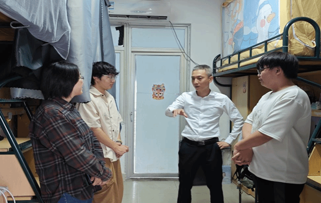 在走访过程中,林书记与同学们亲切交谈,详细了解同学们在生活、学习和未来规划等情况,并提出衷心建议和指导。他鼓励学生要珍惜大学时光,调整好学习状态,做好学习规划,扎实学好专业本领,不断提升自身综合素养。同时,林书记悉心叮嘱同学们要注意宿舍卫生,用电安全问题,保持良好的生活习惯,合理安排作息时间。