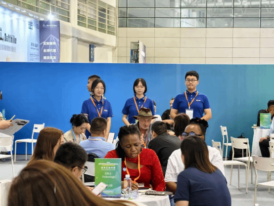 海外采购对接会是此次展会的一大亮点,备受采购商与展商青睐。展会期间先后举办了三十余场海外采购对接会,来自欧美、俄罗斯、中东、东南亚、日韩等相关国家优质采购商参与采购对接、贸易洽谈,现场达成了多个合作意向。外院的学生志愿者在采购对接区接洽外商,进行答疑与面对面对接,展现了扎实的语言功底与外语沟通能力。