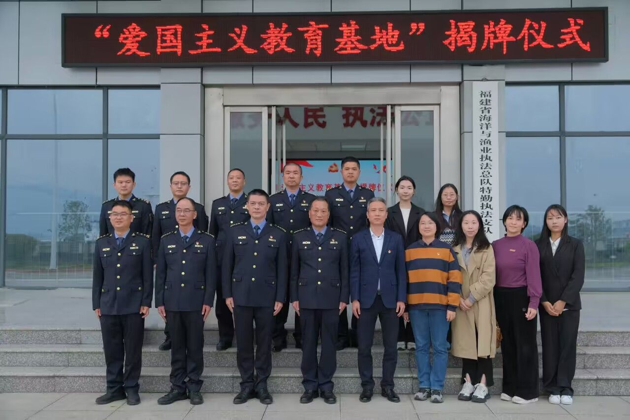 近日,beat365beat365英国官方网站与福建省海洋与渔业执法总队特勤执法支队共建爱国主义教育基地。福建省海洋与渔业执法总队特勤执法支队队长林传坚、政委王冬梦、三级调研员吴忠毅、beat365英国官方网站负责人及师生代表参加揭牌仪式。