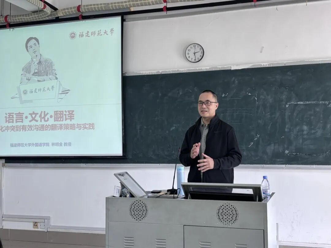 讲座深入探讨了全球化背景下跨文化交流中常见的理解障碍与冲突根源,指出语言不仅是交流工具,更是文化与价值观念的载体。林明金教授结合丰富实例,系统阐述了如何在翻译实践中识别文化差异、化解意义冲突,并实现有效信息传递。他强调,翻译应重视“文化内涵的等值传递”,即超越表层的语义对应,深入捕捉并转译语言背后的文化意象、情感结构和集体意识,从而实现文化内涵的创造性转化与有效流通,使翻译成为文明互鉴的桥梁。在场同学纷纷表示,通过本次学习,不仅深化了对语言、文化、翻译三者关系的理解,更进一步提升了在跨文化交际中语言应用能力与文化传播意识。