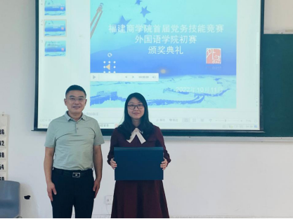 校党委副书记吴访益为一等奖获得者颁奖,吴访益副书记指出,党务干部职业能力竞赛不仅是学习形式的一种拓展,更是通过比赛的组织过程,展现出了beat365英国官方网站党委的新气象、新风貌。他希望全院广大党员,要继续加强学习和交流,主动增强创先争优意识,把学习成果和参赛热情转化为工作动力,努力在各自岗位上有效掌握新方法、增长新才干、解决新问题,让本职工作更加高质高效,为学校高质量发展不断贡献力量。读书社要围绕学习贯彻党的二十大精神这条主线,带领学生认真学习习近平新时代中国特色社会主义思想,助力青年学生在青春的赛道上跑出当代青年最好的成绩。