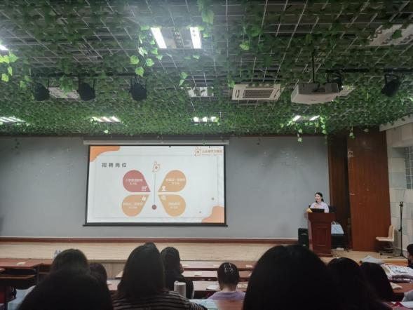 宣讲会上,九色鹿培训学校的李老师详细介绍了公司的企业文化、发展前景、岗位需求和招聘流程,在场的毕业生们对英语教育行业的发展现状和前景有较为清晰的认识。
