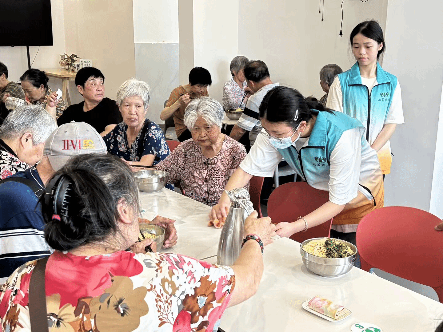 志愿者们早早抵达雨花斋,分工明确,各司其职。在厨房区域,志愿者们协助工作人员洗菜、切菜,悉心为老人们准备碗筷;在餐厅区域,志愿者们拿起扫帚、抹布,仔细清扫地面、擦拭桌椅,并在就餐时段主动为行动不便的老人递上洗净的碗筷,将其轻轻搀扶其到就近空位入座。整个服务过程中,志愿者们不怕苦、不怕累,始终保持着饱满的热情,以认真负责的态度完成每一项任务,在劳动中体会付出的辛苦,更收获了奉献的快乐。“看到老人们脸上洋溢的笑容,我觉得所有的付出都是值得的,希望以后能有更多机会参与这样有意义的活动。” 一位志愿者感慨道。