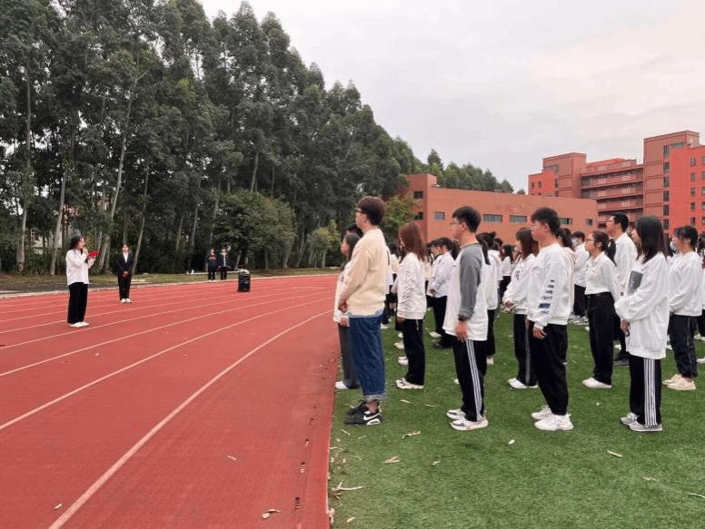 国旗护卫队队员们昂首挺胸,迈着铿锵有力的步伐,护送五星红旗走向升旗台,行礼完毕,国歌奏起,全体肃立,庄重地注视着国旗缓缓升起,深怀对祖国无限的热爱和崇高的敬意。随后,学生代表戴桑莲作国旗下讲话,她分享了学习党的二十大精神的所思所想。她表示,作为一名新时代青年,应有理想追求,深入学思践悟;应敢于担当,不畏艰险;应具备吃苦的毅力,脚踏实地,不断争先;应坚持奋斗,以实际行动奋发图强,激发活力和创造力。慷慨激昂的演讲无不彰显出青年学生的昂扬志气,感染在场的师生,呼吁学子们艰苦奋斗、砥砺前行。
