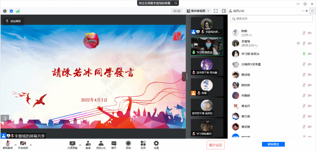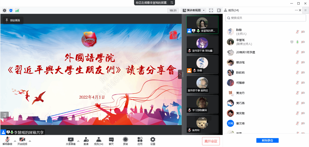 相信通过此次读书分享会,同学们能牢记习近平总书记的殷殷教诲,坚守跟党初心,牢记青春使命,让理想主义的旗帜永远在心中高高飘扬。